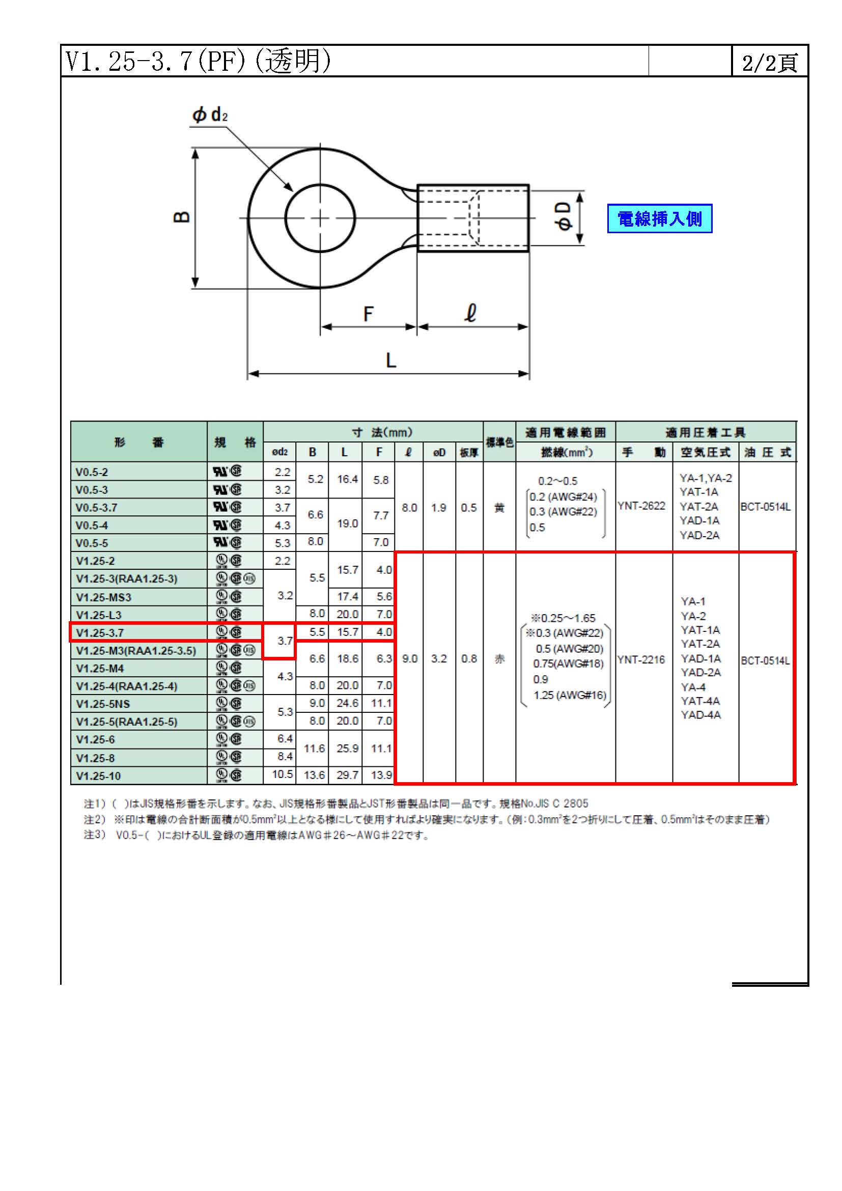トップページ > 部品データベース >  V1.25-3.7(PF)(透明)